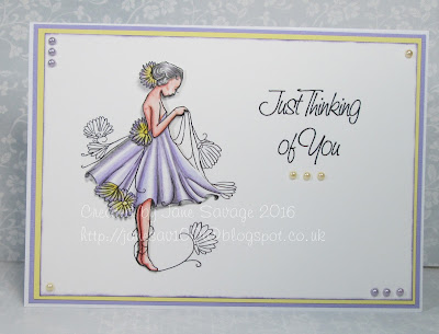 Nikky...As soon as I saw this lovely image I knew exactly what I wanted to do with her...You can't really see it on the photo but I decoupaged her skirt up so she actually has TWO skirts, one coloured on top of the other one which gives lots of dimension to the card and it actually stands out a good 1cm from the card I really made it fluff out like a ballerina...