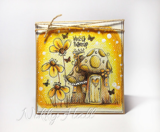 Nikky...I used this lovely stamp, one of my favourites from the Polkadoodles store here....I stamped it on watercolour card (190gsm) and then just coloured it up, trying to restrict my colours. I normally detest yellow tones but my Lyras are changing my mind!