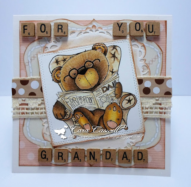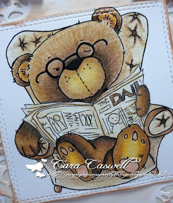 Cara I used one of my fave collections for this challenge ....Winston bear is perfect for colouring in monochrome, and also perfect for the father's day card I made (i'm trying to get ahead) I used tones of brown/yellow to give my card a sepia feel.